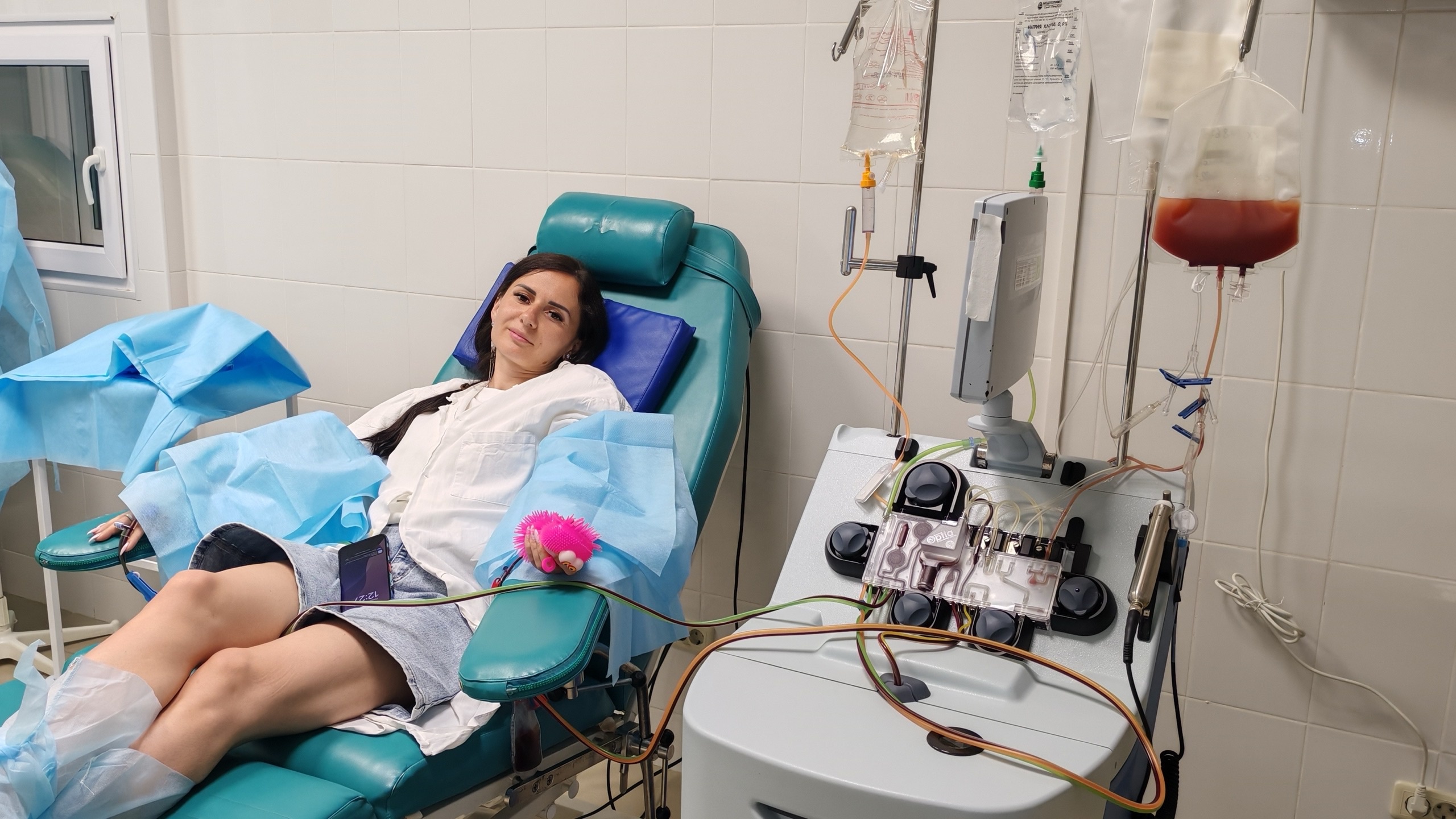 Дарья отправилась в Киров, где прошла процедуру забора стволовых клеток. Сначала — курс стимуляции, затем двухэтапная сдача методом афереза (через вену). Каждая процедура длилась около 6 часов. (Это индивидуально: кому-то хватает одного дня, ей потребовалось два дня).