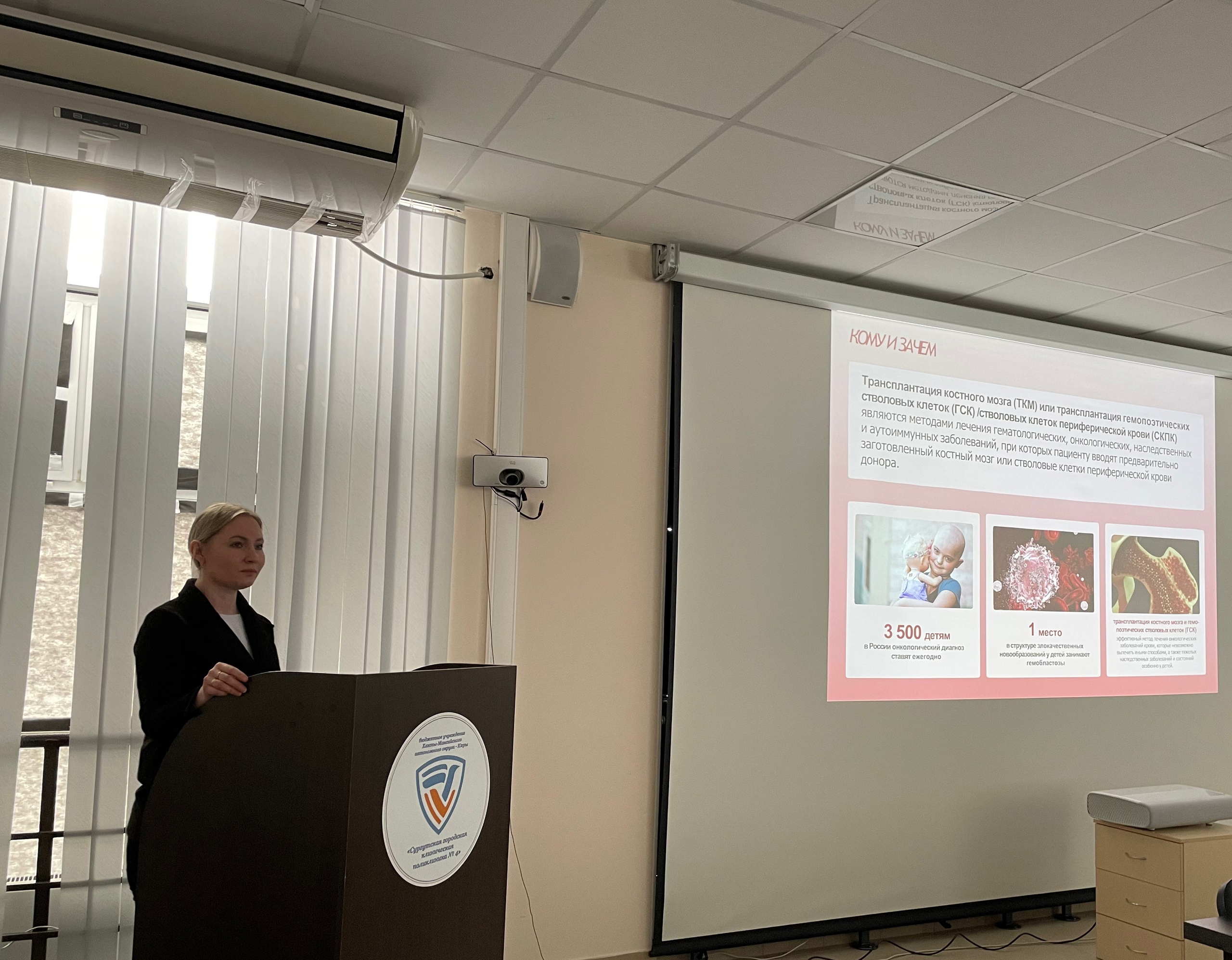 Сотрудники станции переливания крови провели лекцию о донорстве костного мозга в Сургутской городской поликлинике №4.
