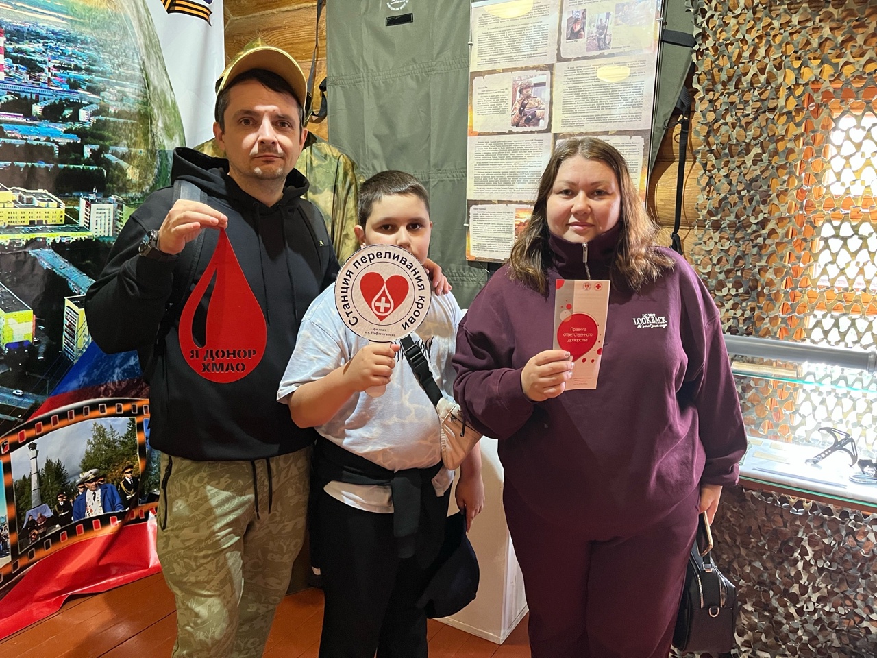 Кроме того, Служба крови в рамках выставки посвященной СВО, рассказала о подвиге доноров, которые сейчас выполняют воинский долг. Среди посетителей выставки была семья Криллюк. «Этот праздничный день я решил провести вместе с женой и сыном. Мы пришли в музейный комплекс и окунулись в атмосферу, наполненную душевным теплом жителей нашего города. На выставке я смог рассказать сыну для чего надо становиться донором крови и ее компонентов. Надеюсь по достижению его совершеннолетия на станцию переливания крови будем ходить вместе», - резюмировал Валерий Кририлюк.