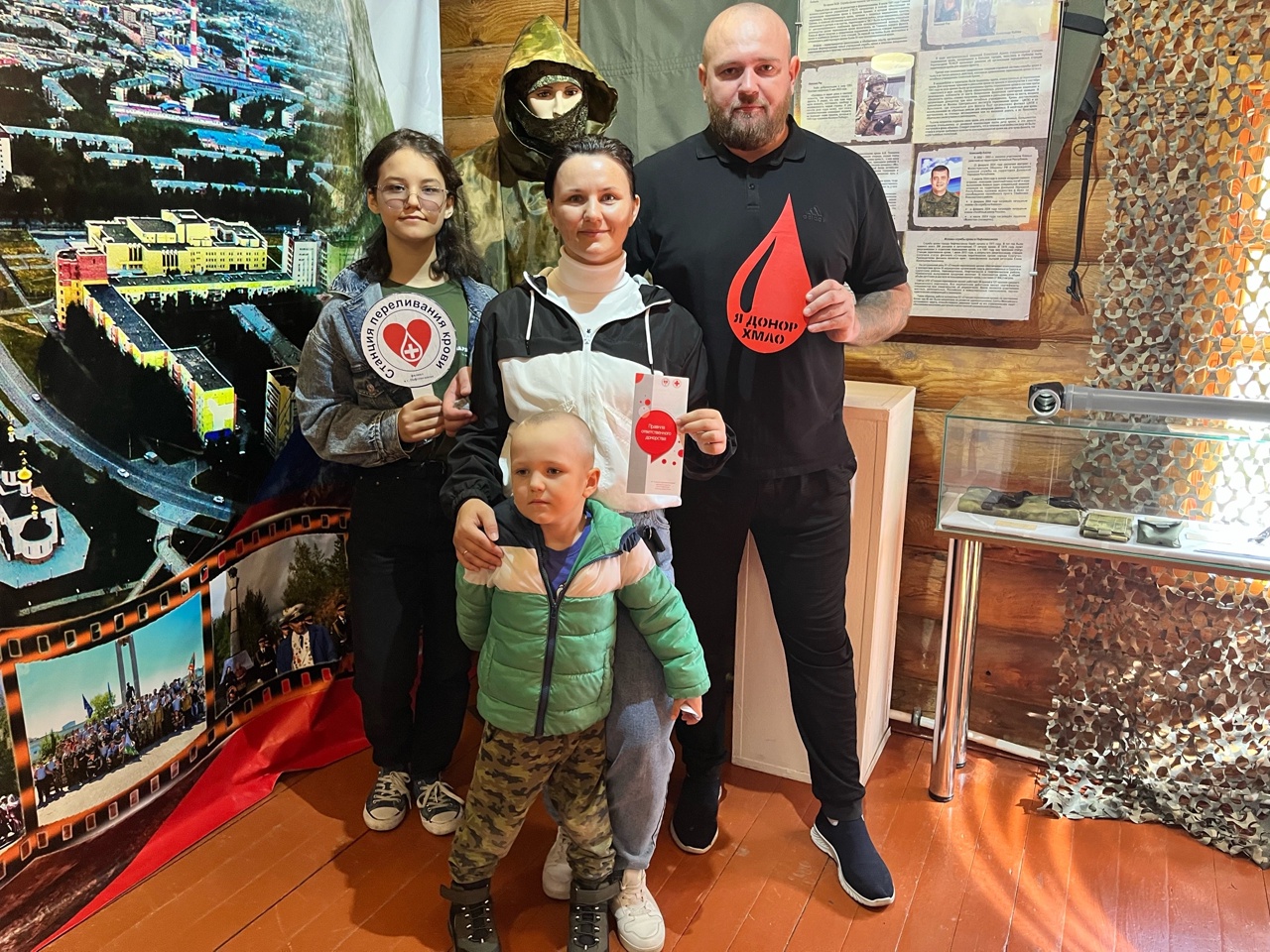 Кроме того, Служба крови в рамках выставки посвященной СВО, рассказала о подвиге доноров, которые сейчас выполняют воинский долг. Среди посетителей выставки была семья Криллюк. «Этот праздничный день я решил провести вместе с женой и сыном. Мы пришли в музейный комплекс и окунулись в атмосферу, наполненную душевным теплом жителей нашего города. На выставке я смог рассказать сыну для чего надо становиться донором крови и ее компонентов. Надеюсь по достижению его совершеннолетия на станцию переливания крови будем ходить вместе», - резюмировал Валерий Кририлюк.
